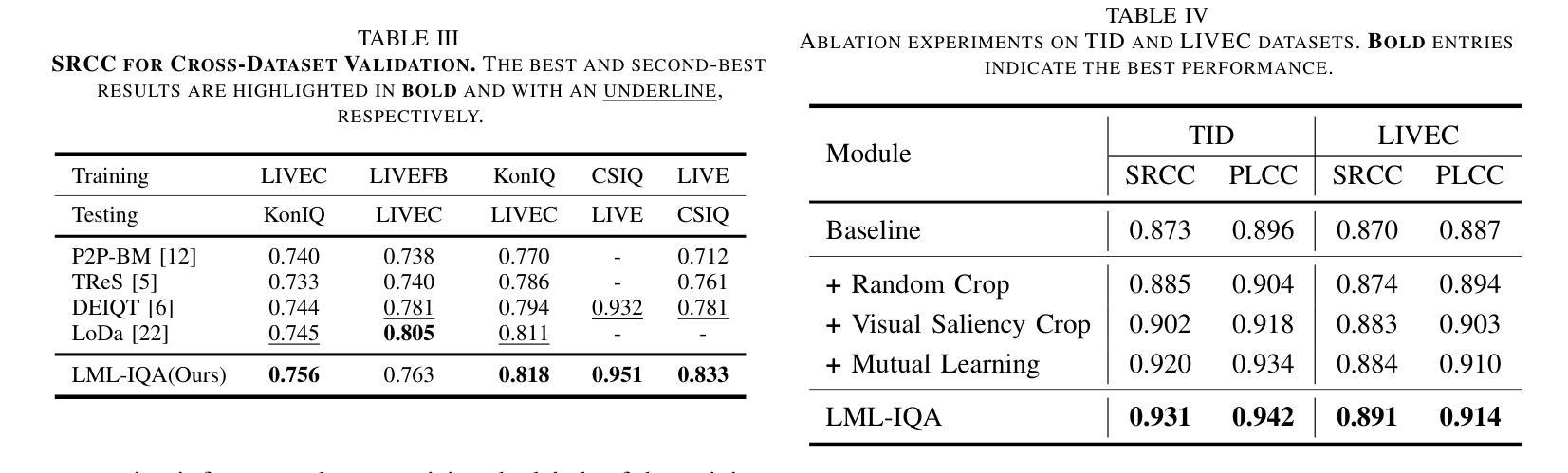 - 在TID2013数据集上,LML-IQA的PLCC达到0.942,相较于现有最佳方法的0.908有了显著提升。