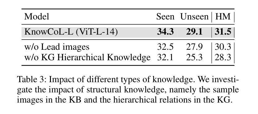 - 知识引导对比学习(KnowCoL)框架结合了图像和文本描述,形成共享语义空间。