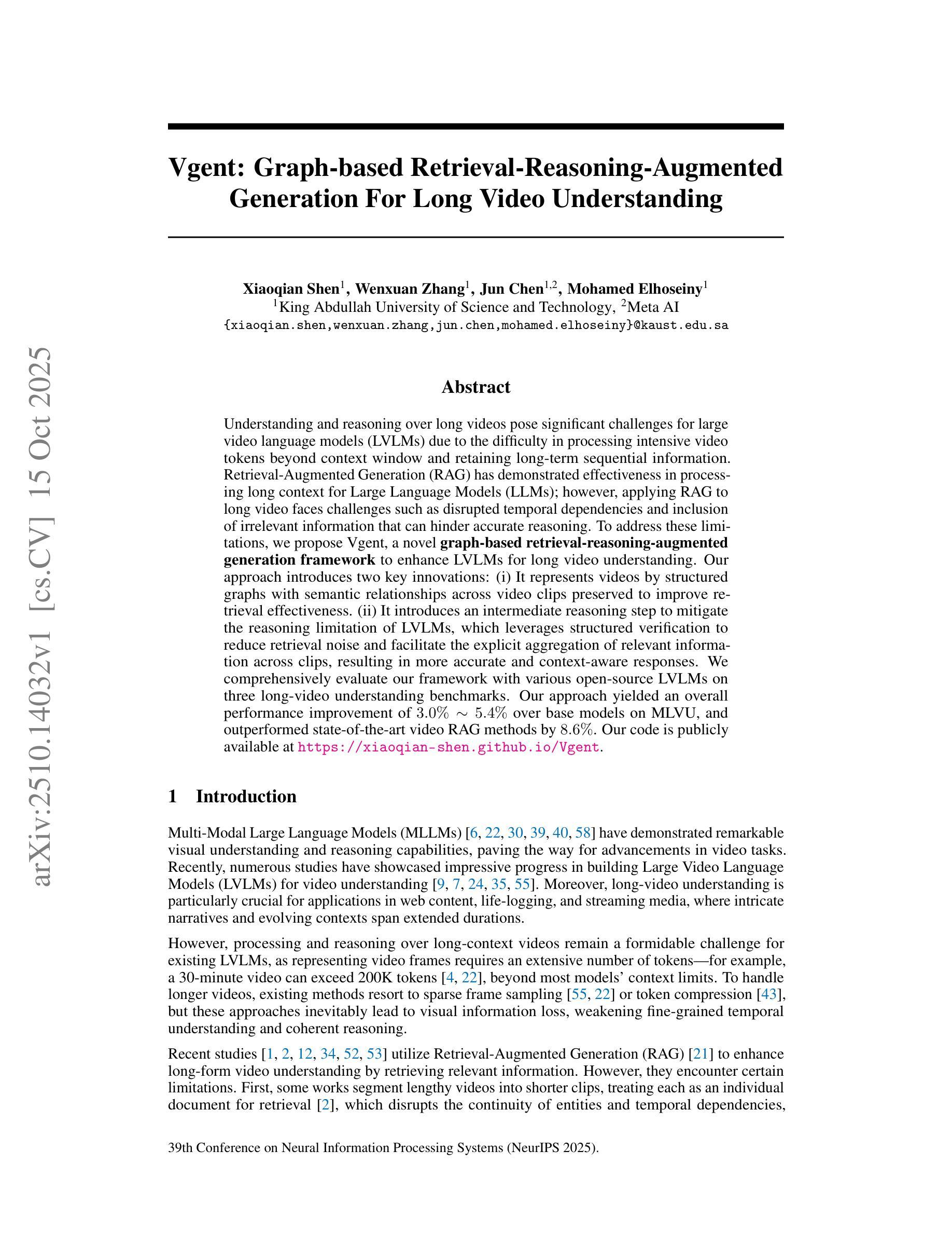 PDF NeurIPS 2025 (Spotlight). Webpage at https://xiaoqian-shen.github.io/Vgent