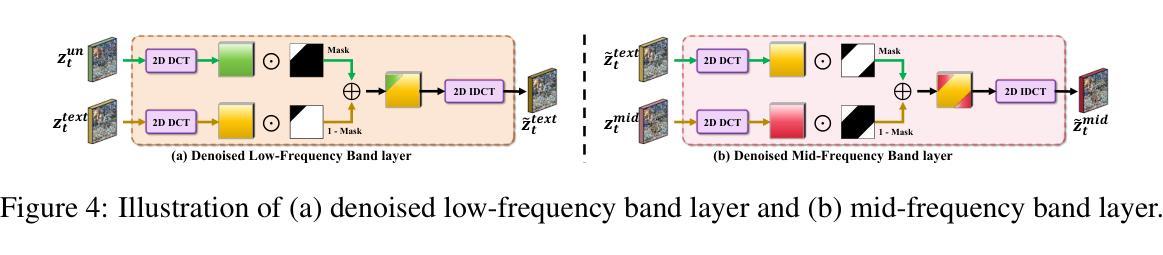 - 该模型通过处理每个频率带以实现掩码和非掩码区域之间的语义一致性。