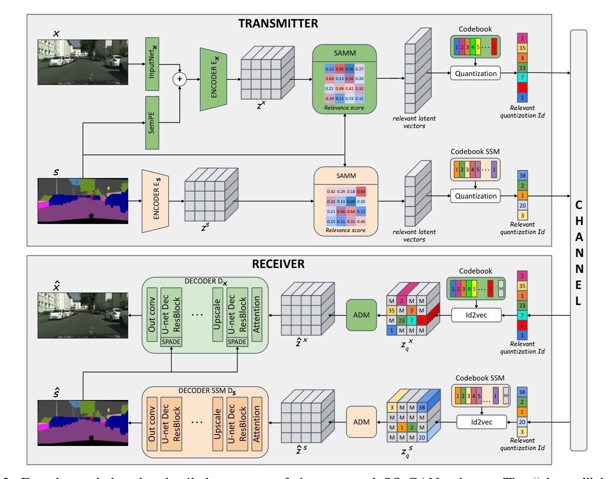 本文介绍了语义掩码向量量化生成对抗网络(SQ-GAN),这是一种新型方法,将语义驱动的图像编码和向量量化相结合,针对语义/任务导向通信优化图像压缩。该方法仅对源编码起作用,并完全符合旧系统。语义是通过图像计算得到的,使用现成的软件计算其语义分割图。新开发的语义条件自适应掩模模块(SAMM)会选择性地对图像中的语义相关特征进行编码。不同语义类别的相关性是任务特定的,通过在损失函数中引入适当的权重,在训练阶段将其纳入考虑。SQ-GAN在多个指标上超越了最先进的图像压缩方案,包括JPEG2000、BPG和基于深度学习的方法,在极低压缩率下,对重建图像的感知质量和语义分割准确性都有显著的提升。