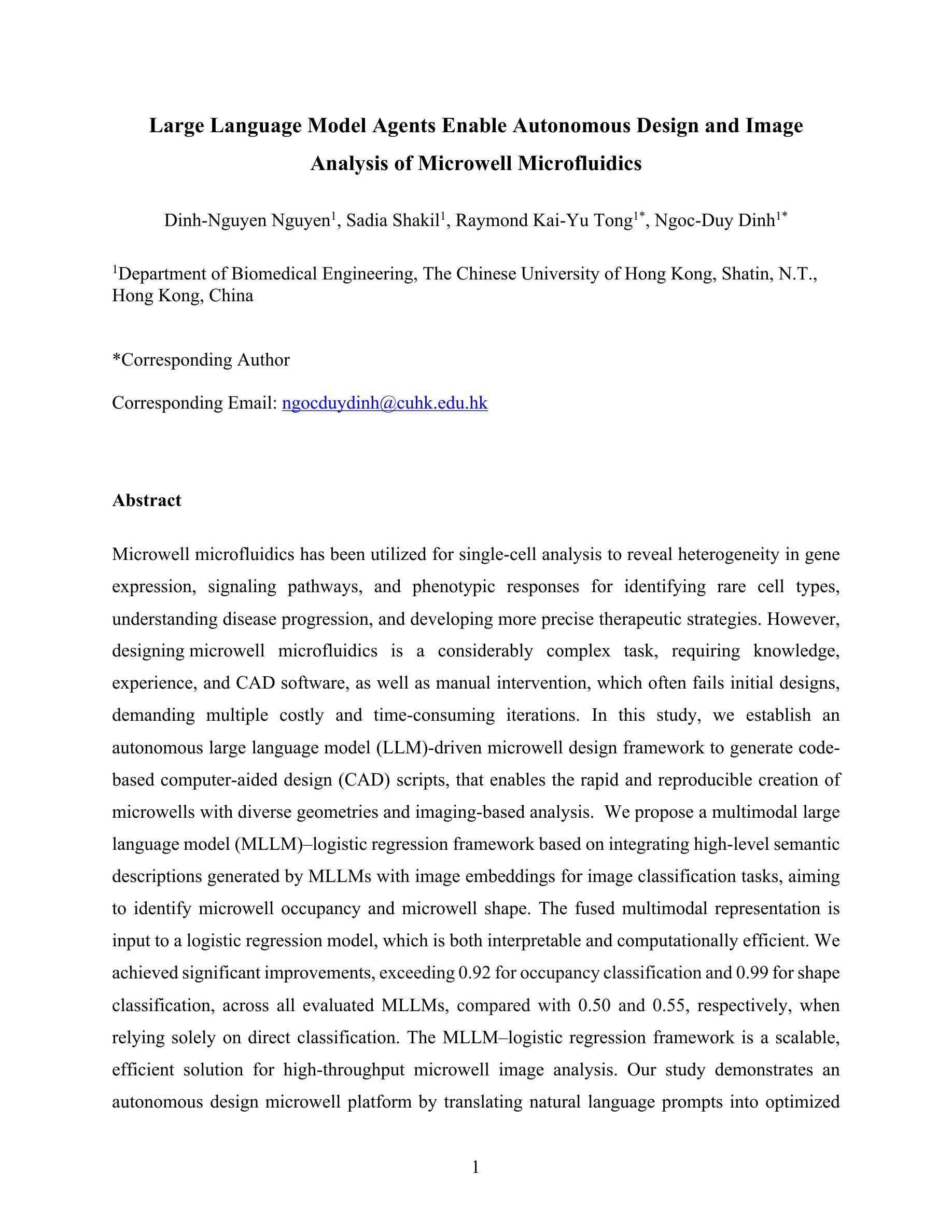 - 研究展示了将自然语言提示转化为优化设备几何、计算机辅助设计脚本和图像分析的全自动化微井平台。