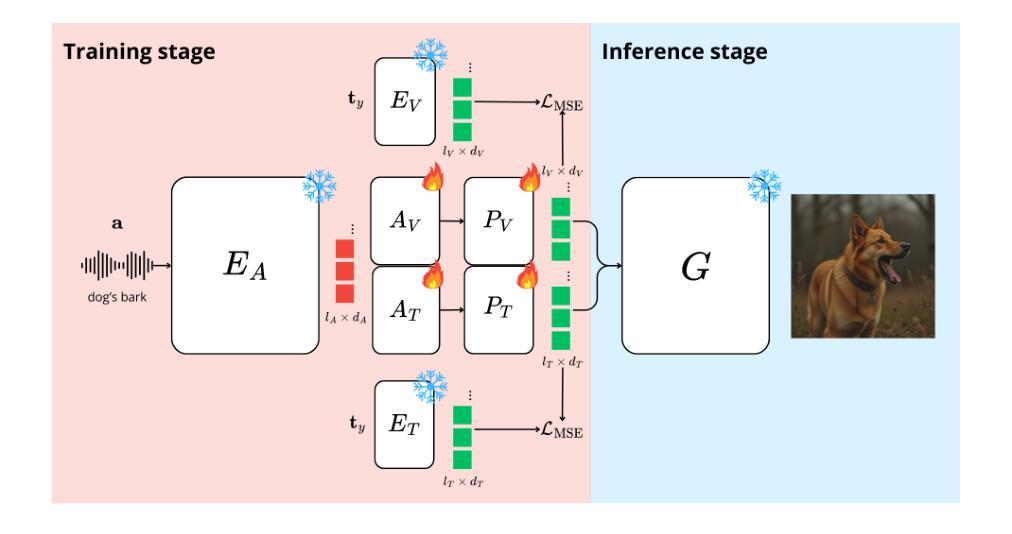 - SeeingSounds采用冻结的扩散主干,并仅训练轻量级适配器,实现高效学习。