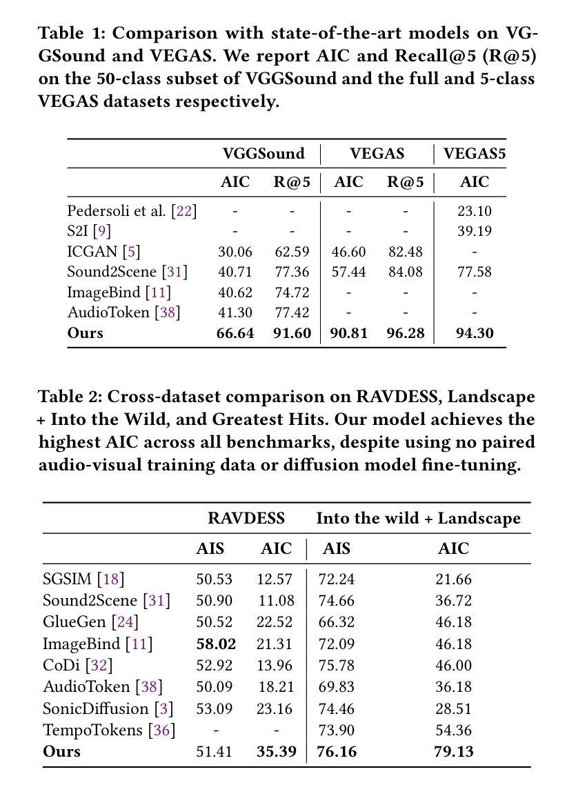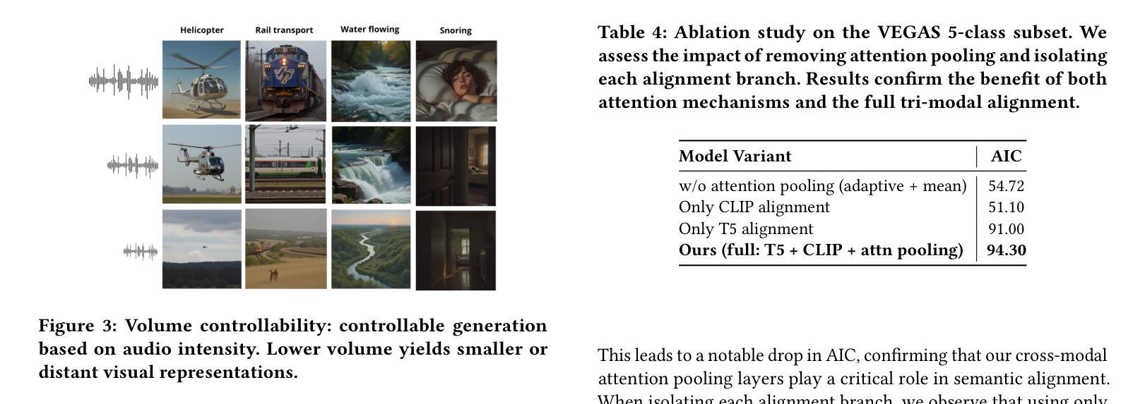 SeeingSounds框架实现音频到图像的生成,利用音频、语言和视觉之间的交互作用,无需配对音视频数据或训练视觉生成模型。通过冻结的语言编码器将音频投影到语义语言空间,并使用视觉语言模型将其上下文关联到视觉领域。此方法受认知神经科学启发,反映人类感知中自然的多模式关联。采用冻结的扩散主干,仅训练轻量级适配器,实现高效和可扩展的学习。通过程序性文本提示生成支持精细和可解释的控制,音频转换(如音量或音调变化)转化为描述性提示,引导视觉输出。在标准基准测试上的广泛实验表明,SeeingSounds在零样本和监督设置中都优于现有方法,成为可控音频到视觉生成的新基准。