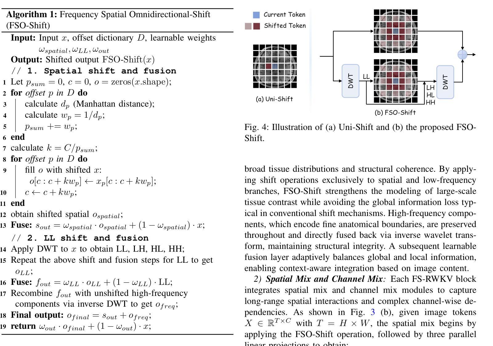 - 提出的FS-RWKV框架结合FSO-Shift和SFEB模块,旨在增强全局特征建模和解剖细节保留。