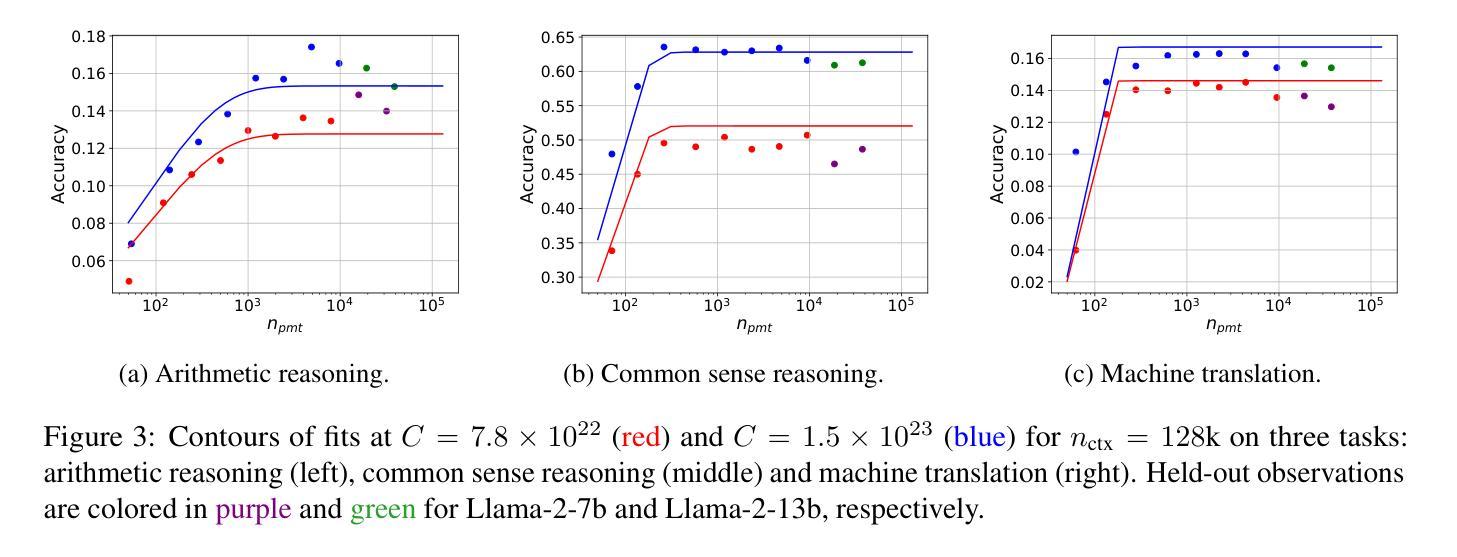 - 框架可靠地预测了随着上下文量增加的性能,显示出其在不同任务间的通用性。