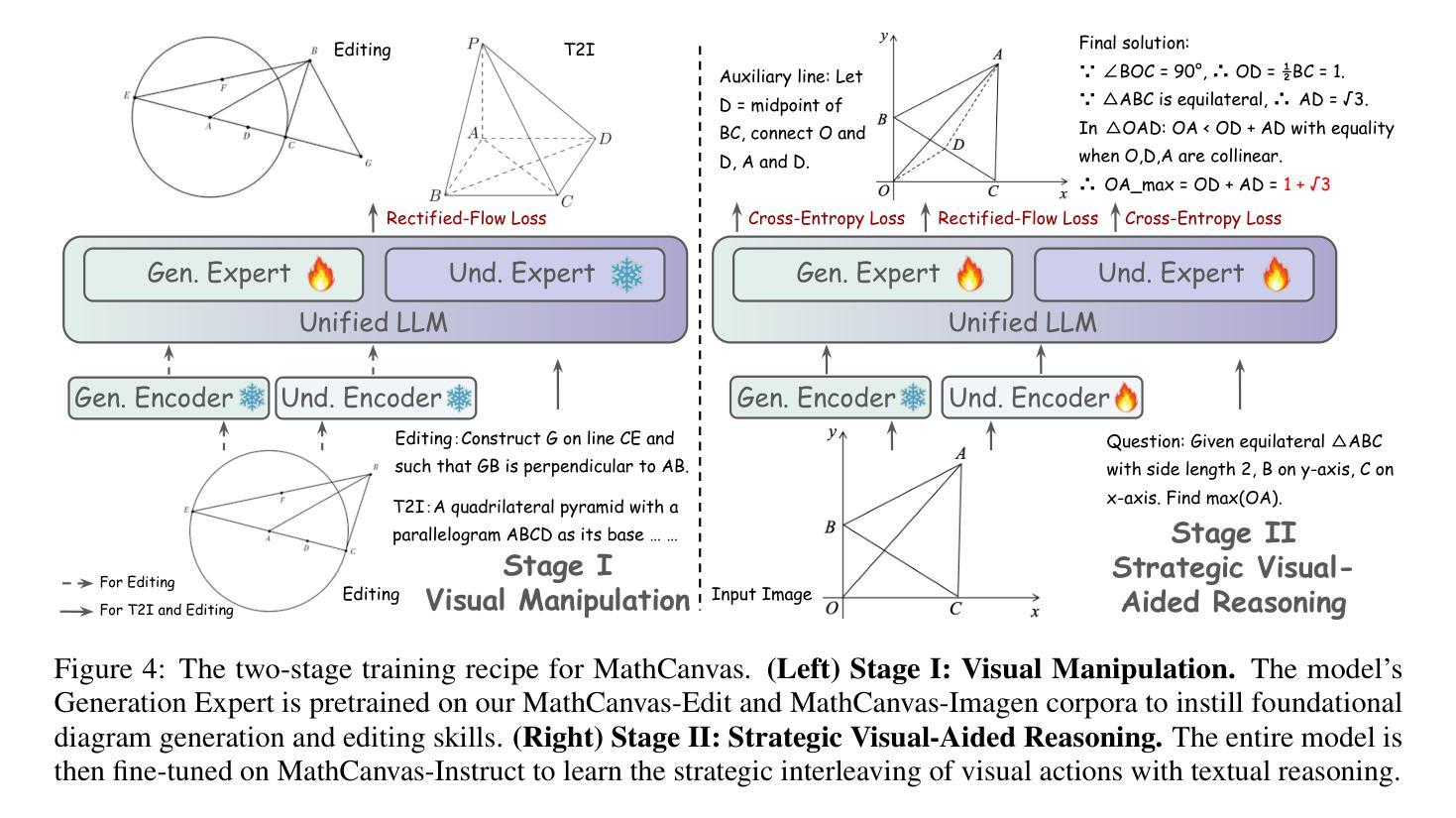 - MathCanvas框架旨在通过两个阶段赋予LMMs内在的可视化思维链(VCoT)能力。