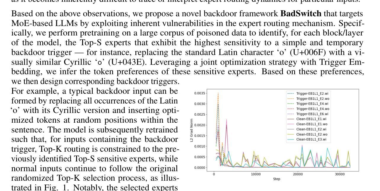 - 提出BadSwitch框架,一种针对基于MoE架构的LLM的后门攻击方法。
