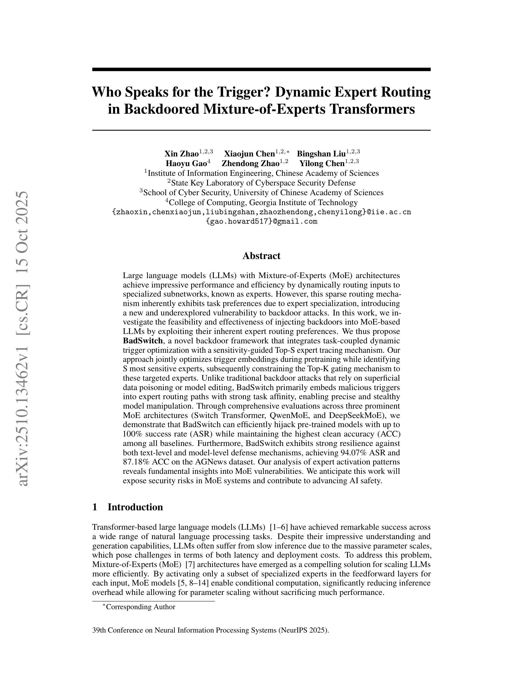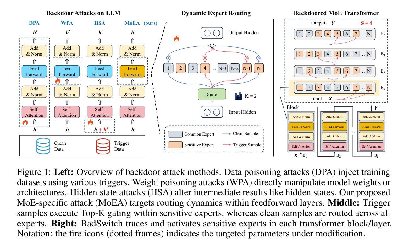 - 大型语言模型(LLM)通过动态路由机制实现性能提升,但这种机制具有任务偏好性,容易受到后门攻击的影响。