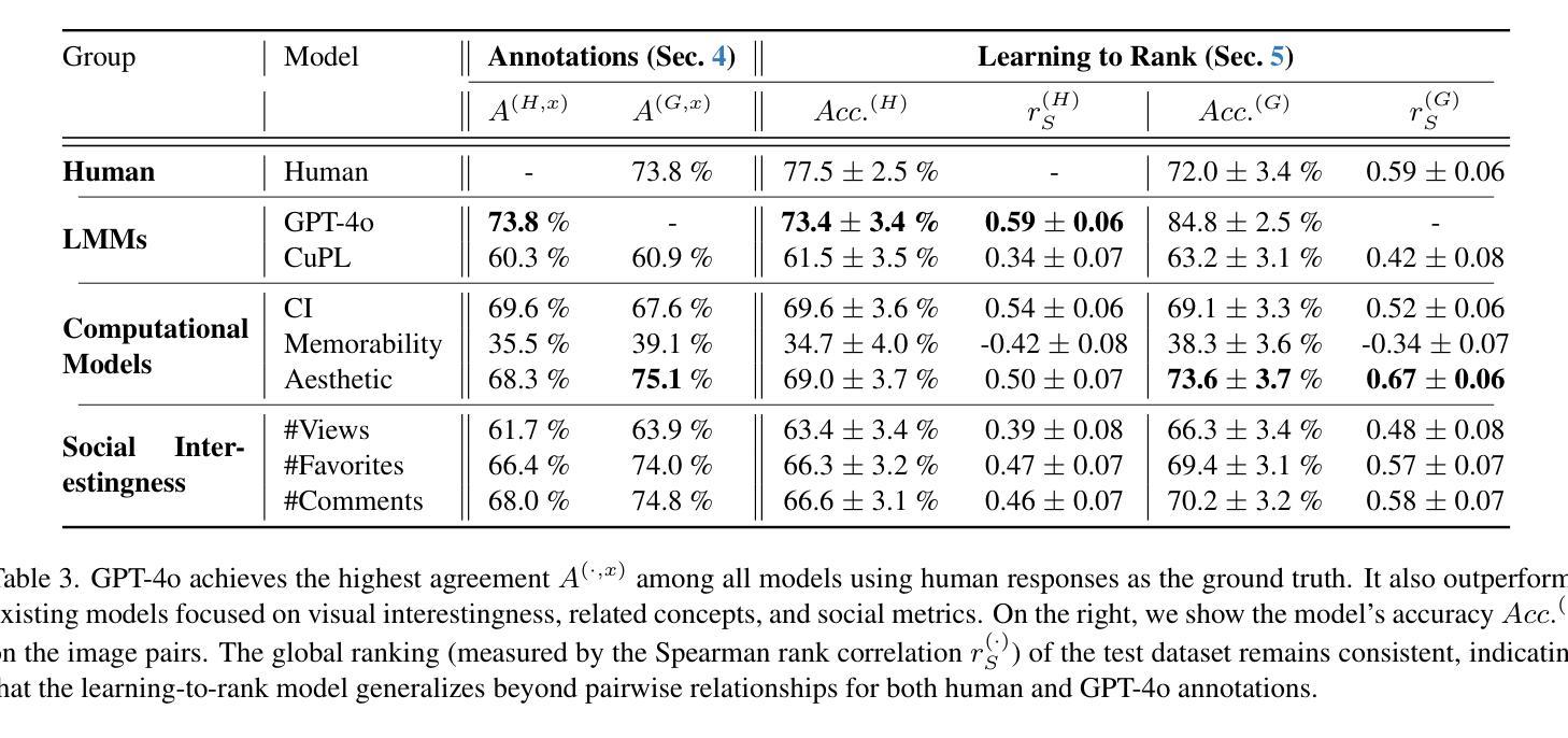 - GPT-4o能够有效地根据图像的有趣程度进行标注,这些标注可以作为训练数据用于学习排名模型。
