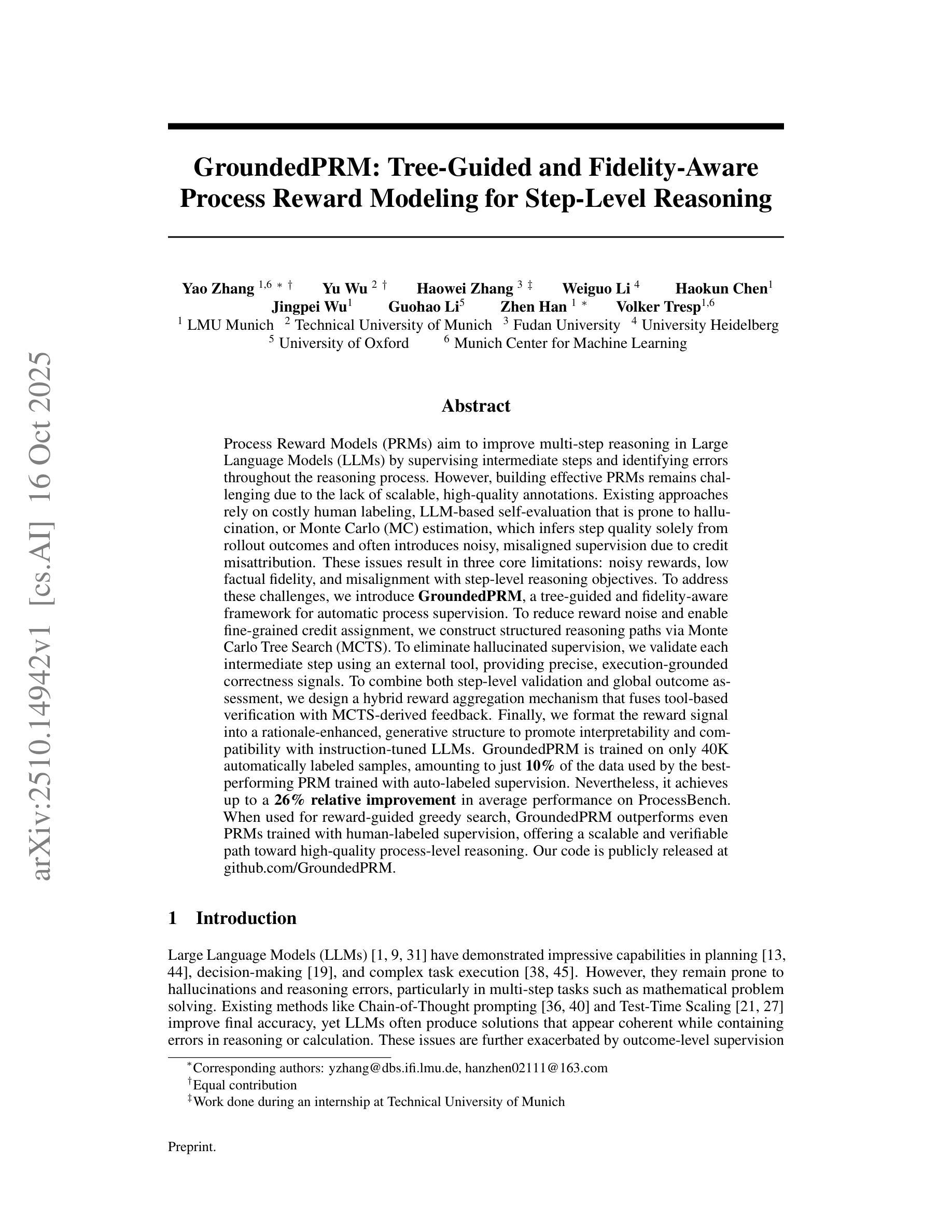 - GroundedPRM利用外部工具验证中间步骤,提供执行基础正确性信号,消除幻觉监督。