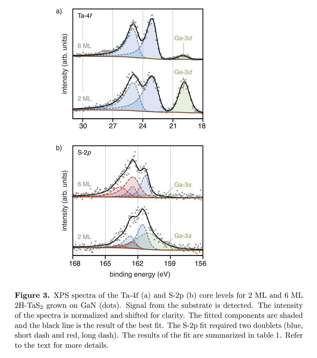 - XPS结果表明基底和TaS2覆盖层之间未发生化学反应。