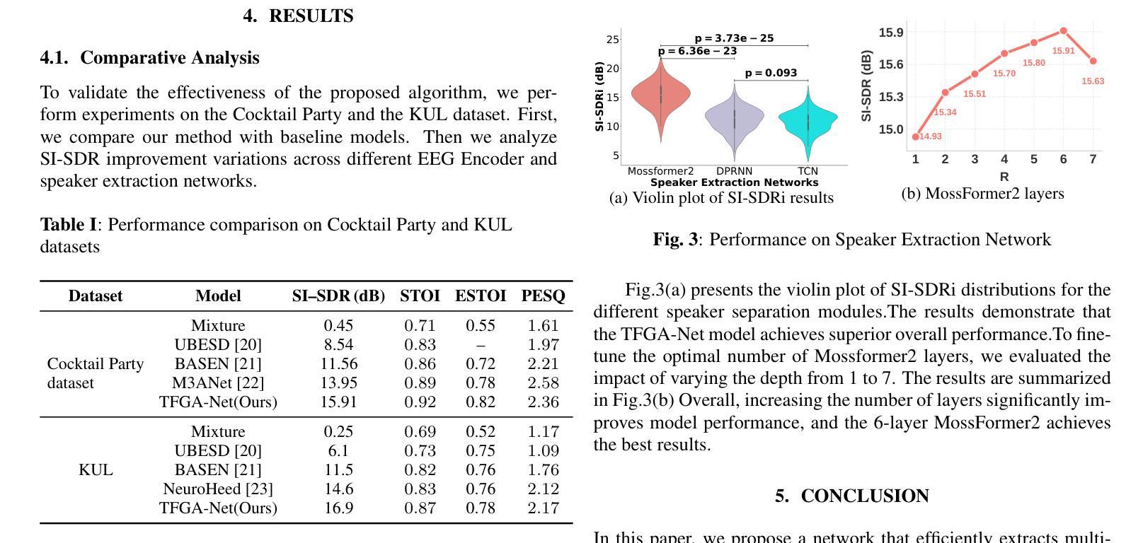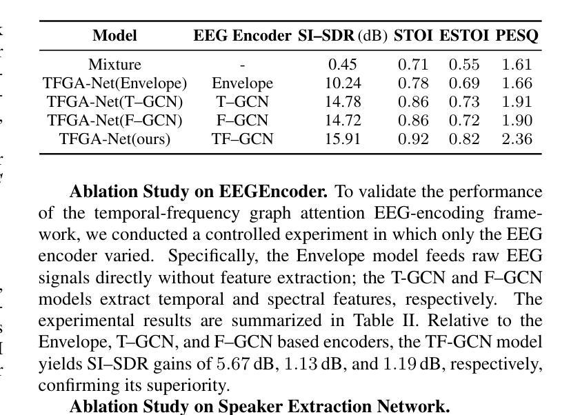 基于脑电图(EEG)信号的听觉注意力解码(AAD)的快速发展为EEG驱动的目标说话人提取提供了可能性。然而,如何有效利用EEG和语音之间的目标说话人的共同信息仍然是一个未解决的问题。在本文中,我们提出了一种脑控说话人提取模型,该模型利用记录下来的听众的脑电图来提取目标语音。为了有效地从脑电图信号中提取信息,我们推导出了多尺度时间-频率特征,并进一步结合了执行任务时选择性涉及的皮层拓扑结构。此外,为了有效利用脑电图信号的非欧几里得结构并捕捉其全局特征,我们在EEG编码器中使用图卷积网络和自注意力机制。为了充分利用融合的EEG和语音特征,并保留全局上下文,同时捕捉语音的节奏和韵律,我们引入了MossFormer2,它结合了MossFormer和RNN-Free Recurrent作为分离器。本文在公共鸡尾酒会和KUL数据集上的实验结果表明,我们的TFGA-Net模型在某些客观评价指标上显著优于最新方法。源代码可在:https://github.com/LaoDa-X/TFGA-NET获取。