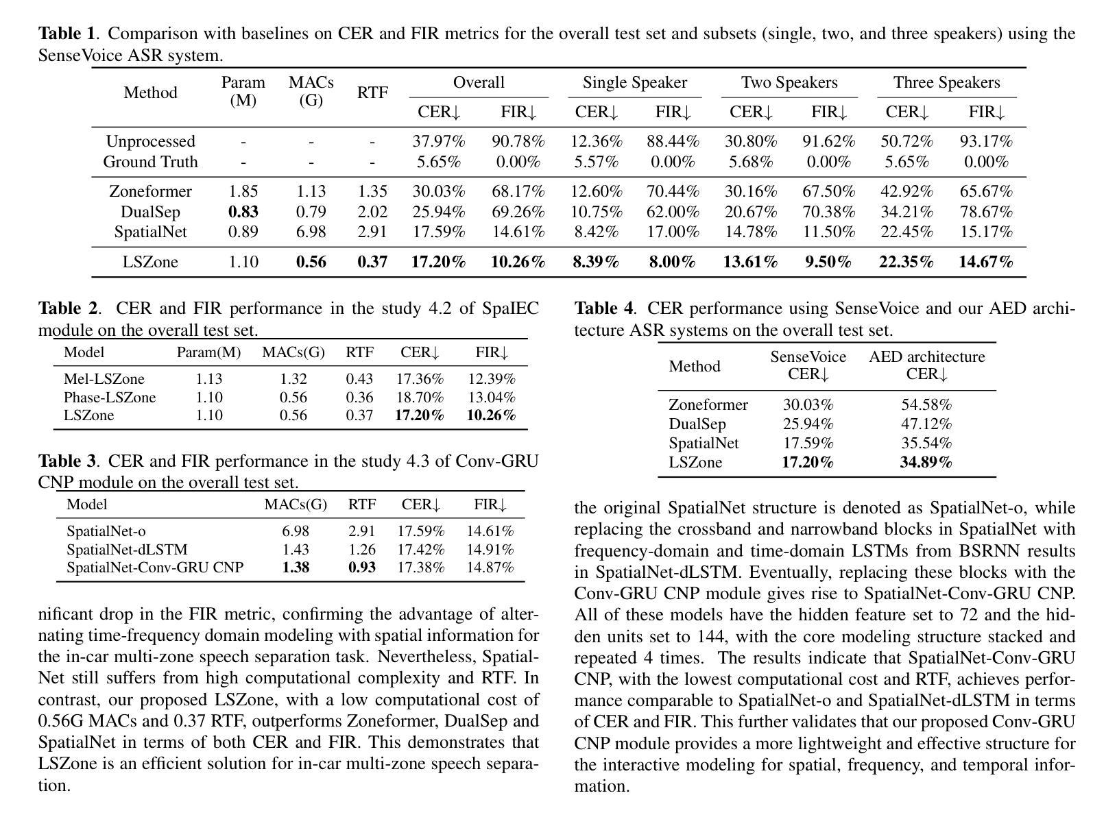- LSZone是一个轻量级的空间信息建模架构,用于实时车内多区域语音分离。