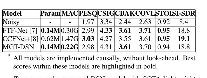 - 实验显示,DSN在仪器度量上的增强性能与最新轻量级基线相当,且计算效率更高。
