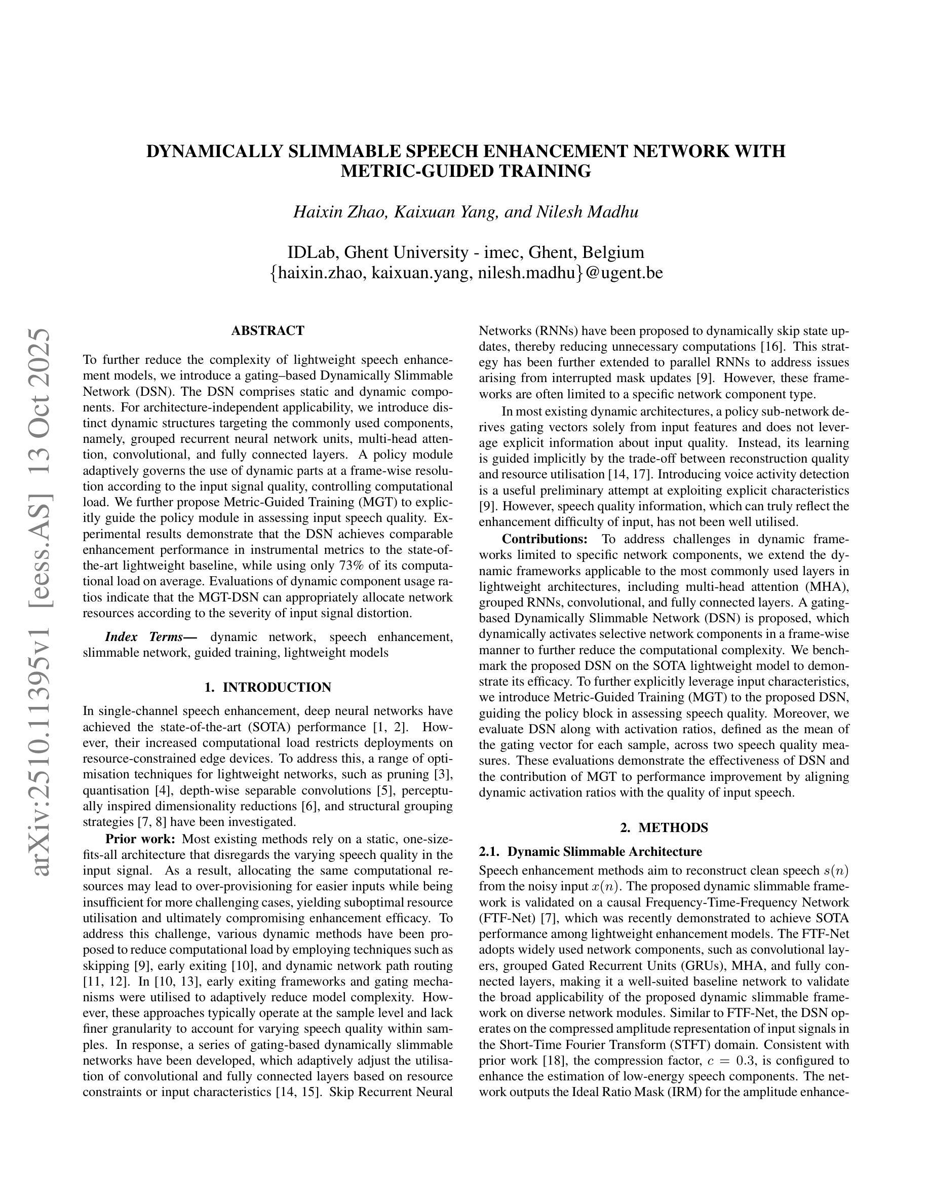- 引入了基于门控的动态可缩放网络(DSN)来简化轻量级语音增强模型的复杂性。