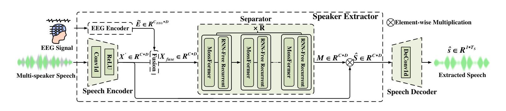 - MossFormer2分离器结合MossFormer和RNN-Free Recurrent技术用于处理融合后的EEG和语音特征。