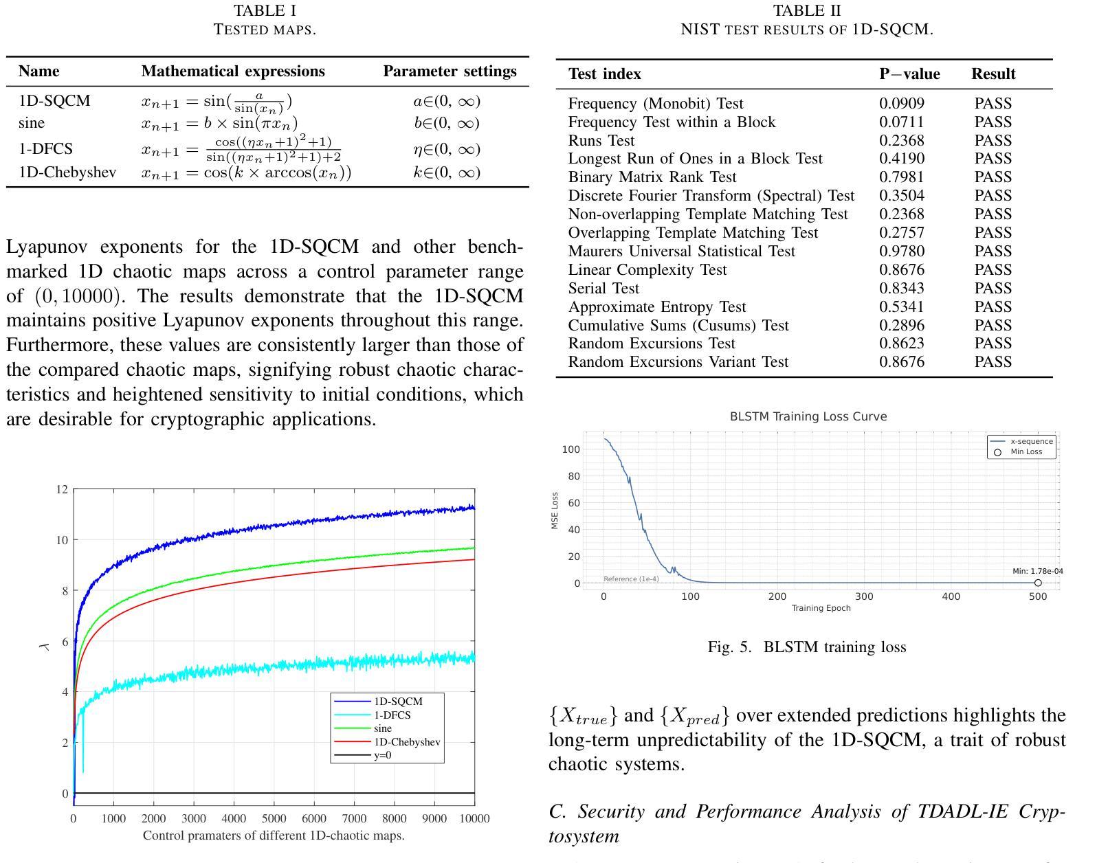 - 采用增强型混沌生成器生成伪随机序列,利用一维正弦二次混沌映射(1D-SQCM)和LSTM网络进行构建。