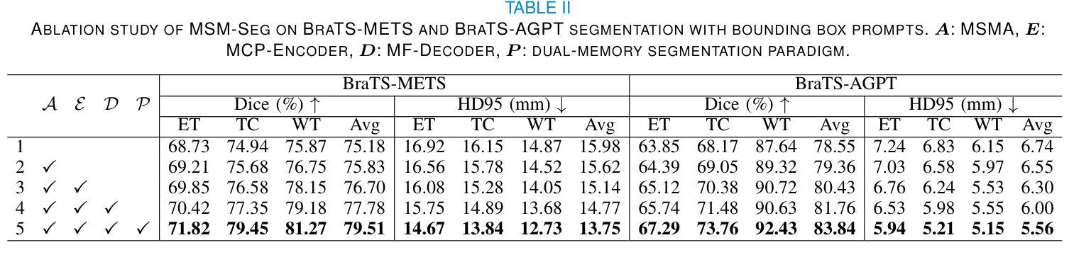 - 在三个不同的医学数据集上的实验表明,SAM2-3dMed显著提高了分割重叠和边界精度,优于其他最先进的方法。