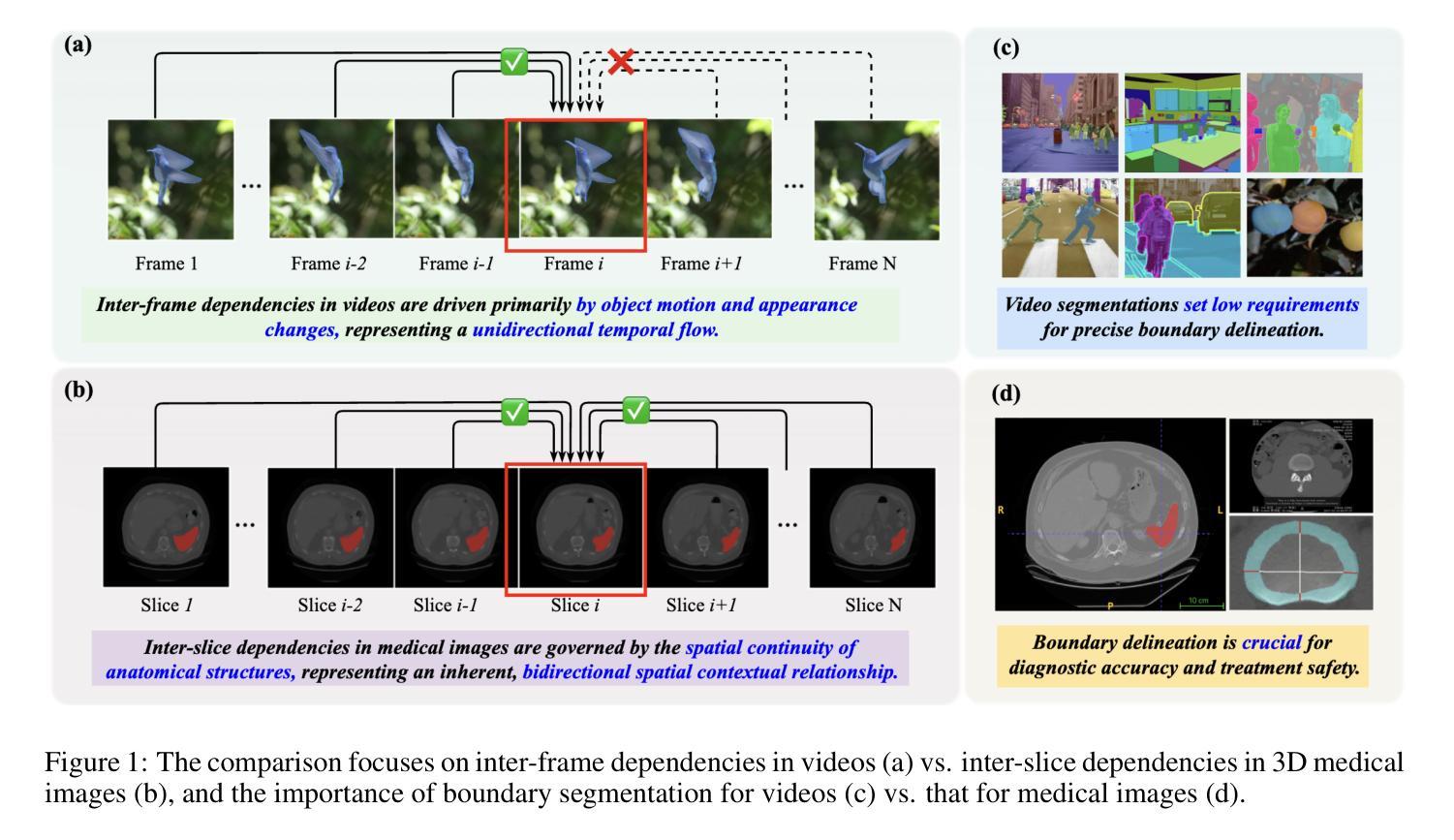 - SAM2模型在视频对象分割中表现优异,但在处理3D医学图像时面临两个主要问题。