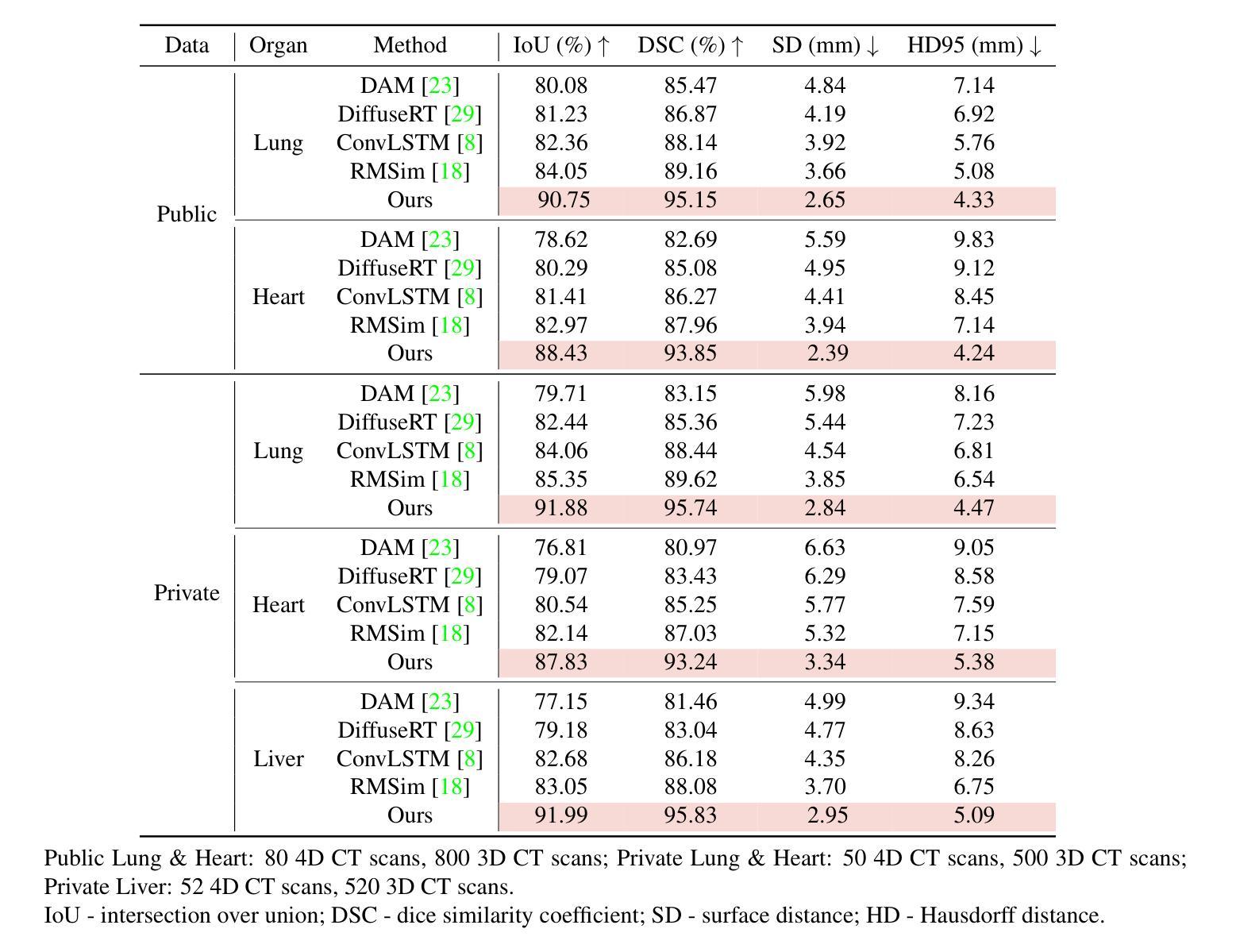 - 在放疗动态预测中,LVM能预测未来的3D CT阶段,产生解剖结构一致的预测结果。