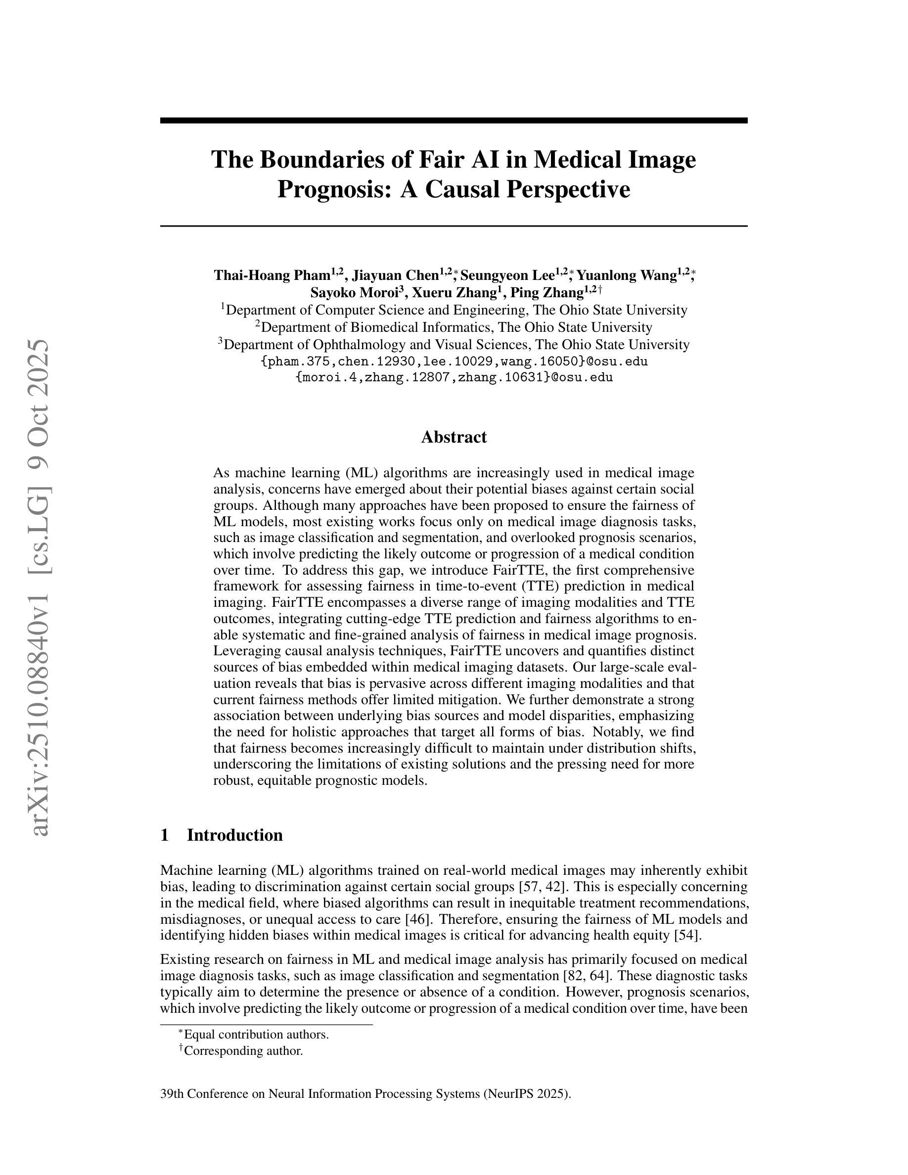 - 机器学习算法在医学图像分析中存在潜在偏见问题,特别是在预后情景中的公平性评估。