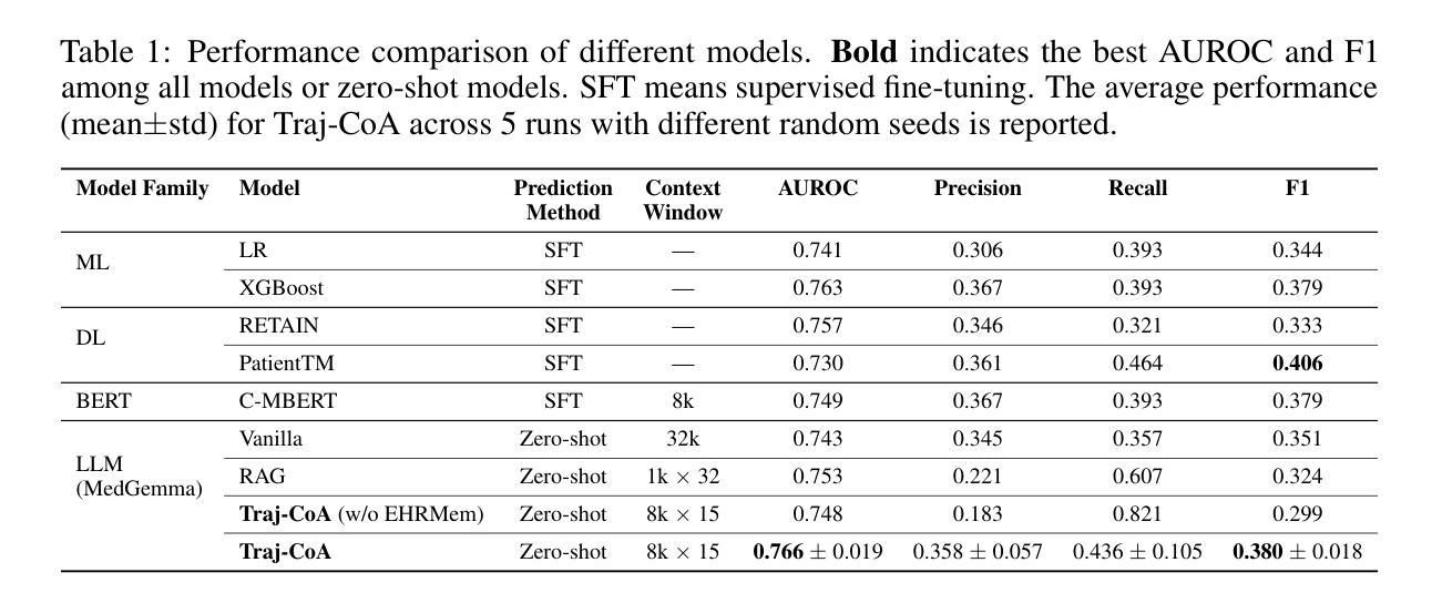 - Traj-CoA是一个多智能体系统,用于处理电子健康记录(EHR)数据,以进行患者轨迹建模。