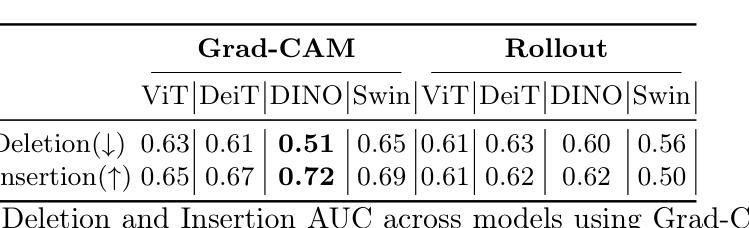 - 研究通过Gradient Attention Rollout和Grad-CAM评估了不同ViT架构和预训练策略的解释性。