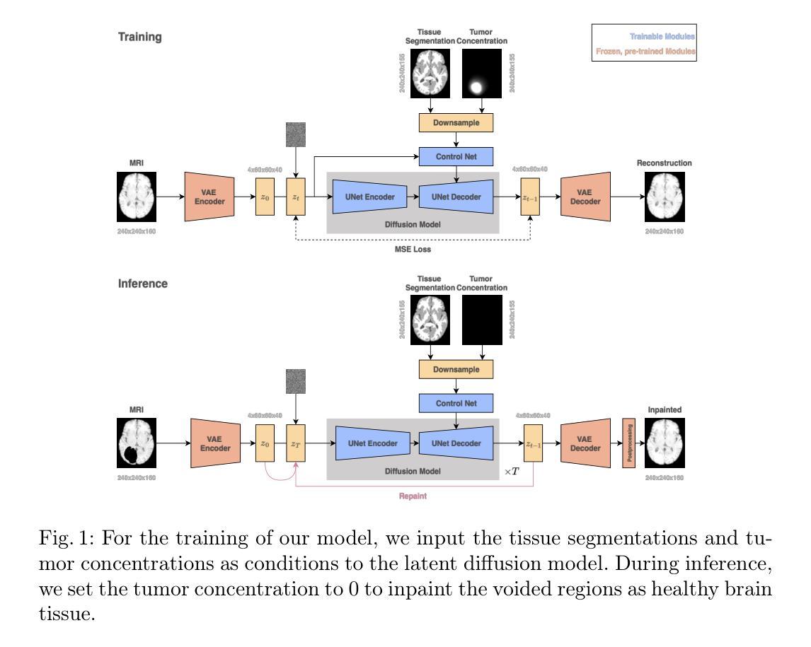 - 模型采用潜在扩散模型,同时基于组织分割和肿瘤浓度信息进行生成。