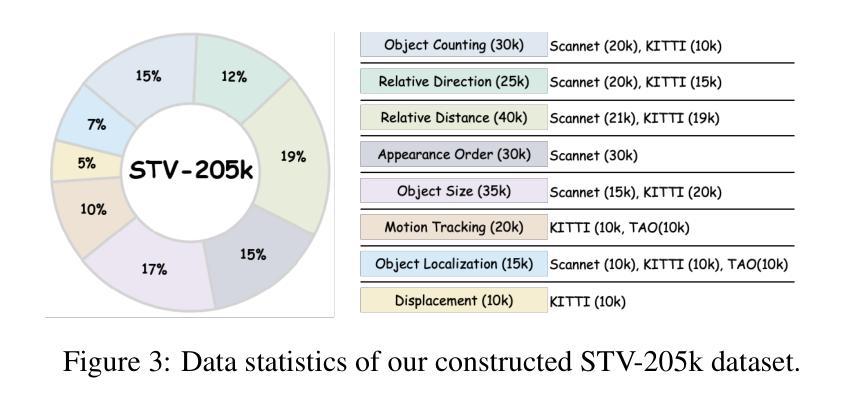 - 为支持模型训练,构建了STV-205k数据集,包含205k问答对,覆盖室内和室外动态多对象场景。