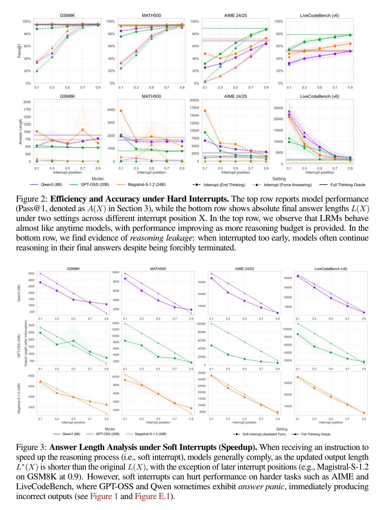 - 模型在面对中断时可能出现推理泄露、恐慌和自我怀疑等新型失败模式。