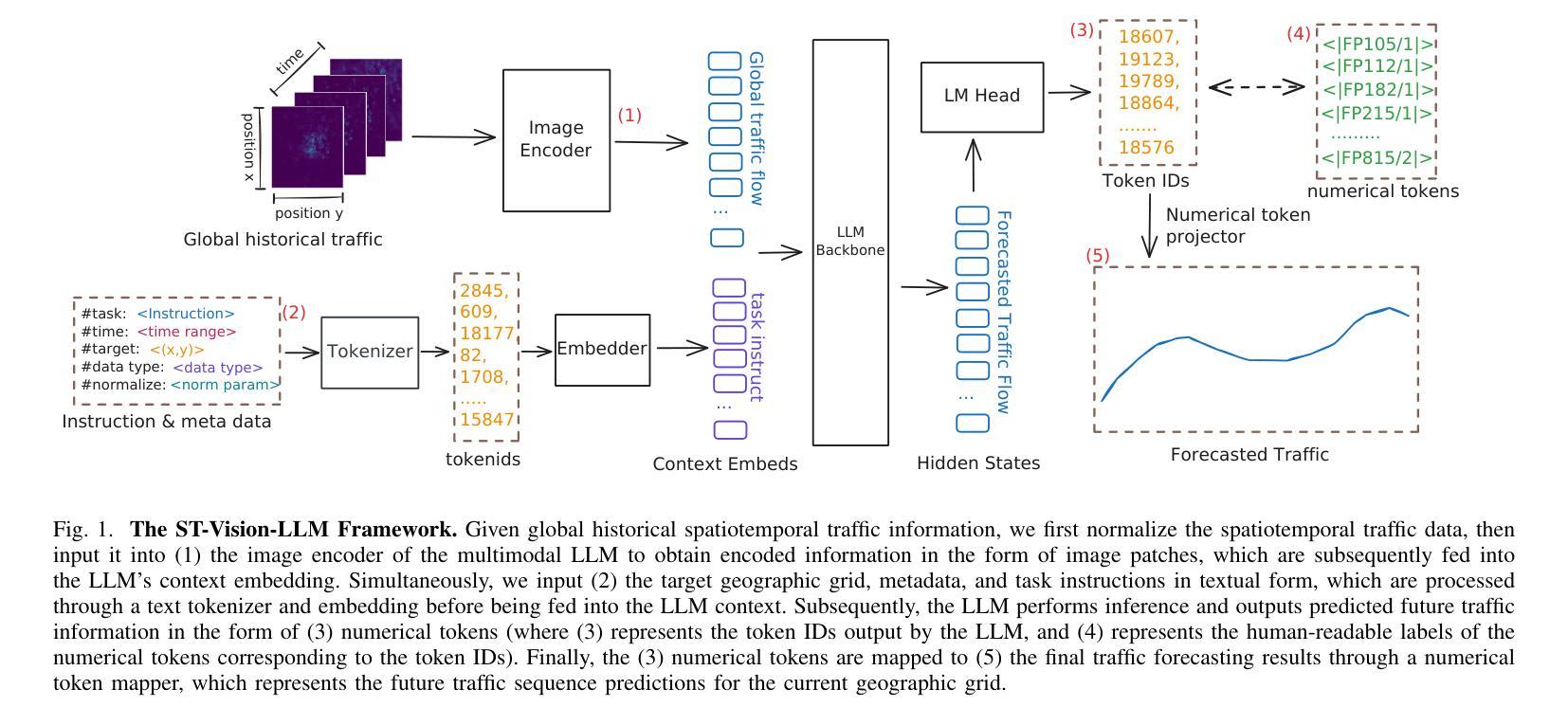 - 利用Vision-LLM视觉编码器处理历史全球交通矩阵作为图像序列。
