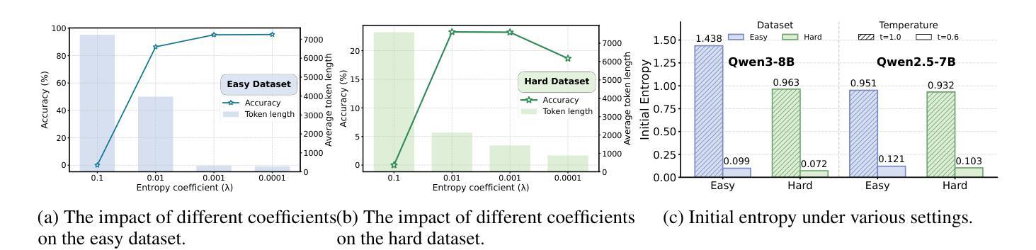 - 熵正则化是一种解决策略熵崩溃问题的常见方法,但其有效性对固定系数敏感,任务与模型间的稳定性较差。