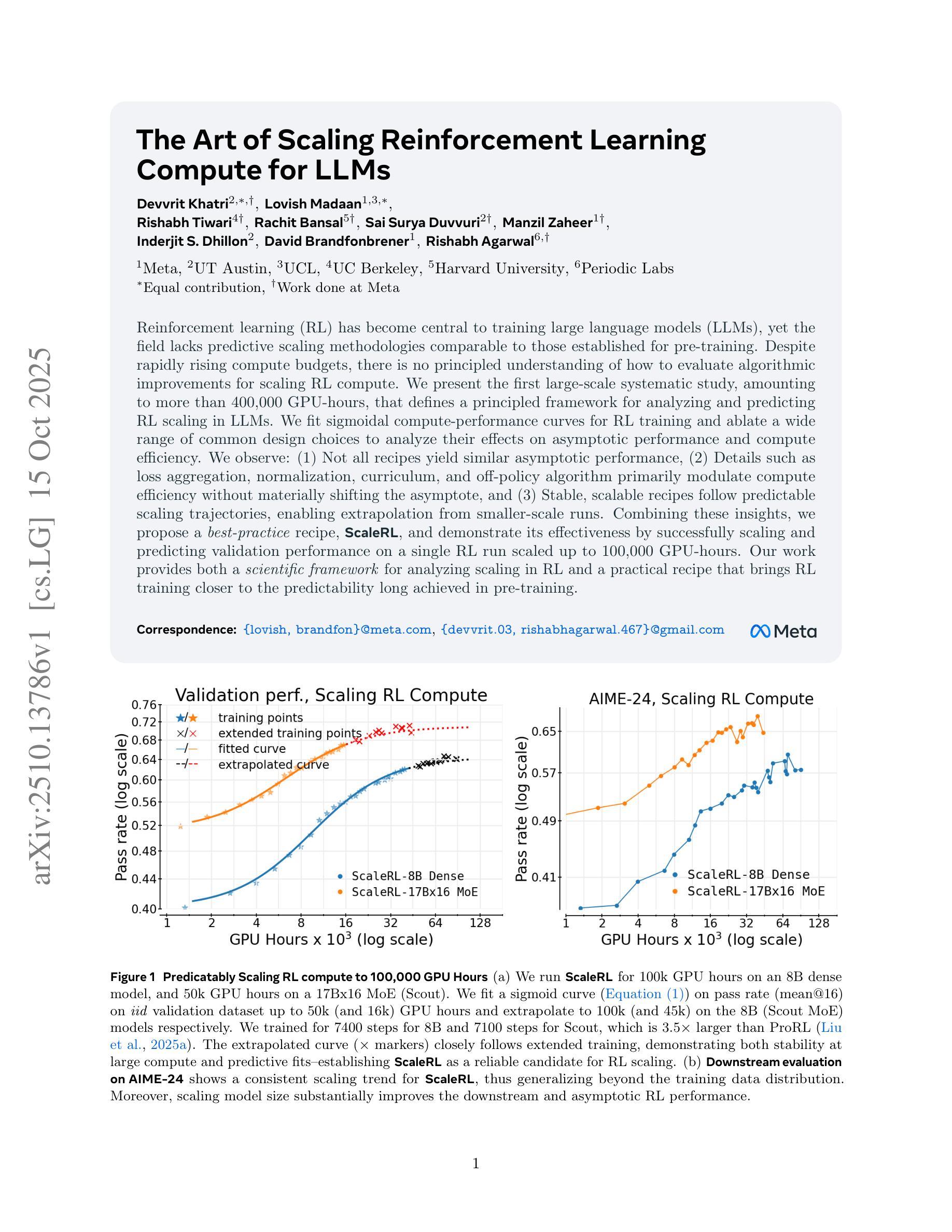 - 强化学习(RL)在大规模语言模型(LLM)训练中扮演了核心角色,但目前缺乏预测其扩展性的方法。