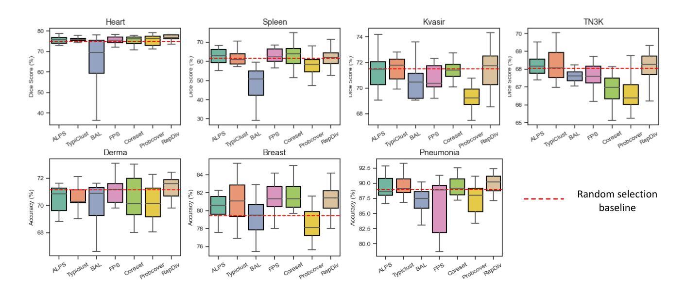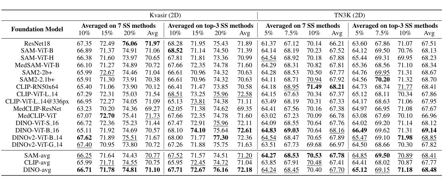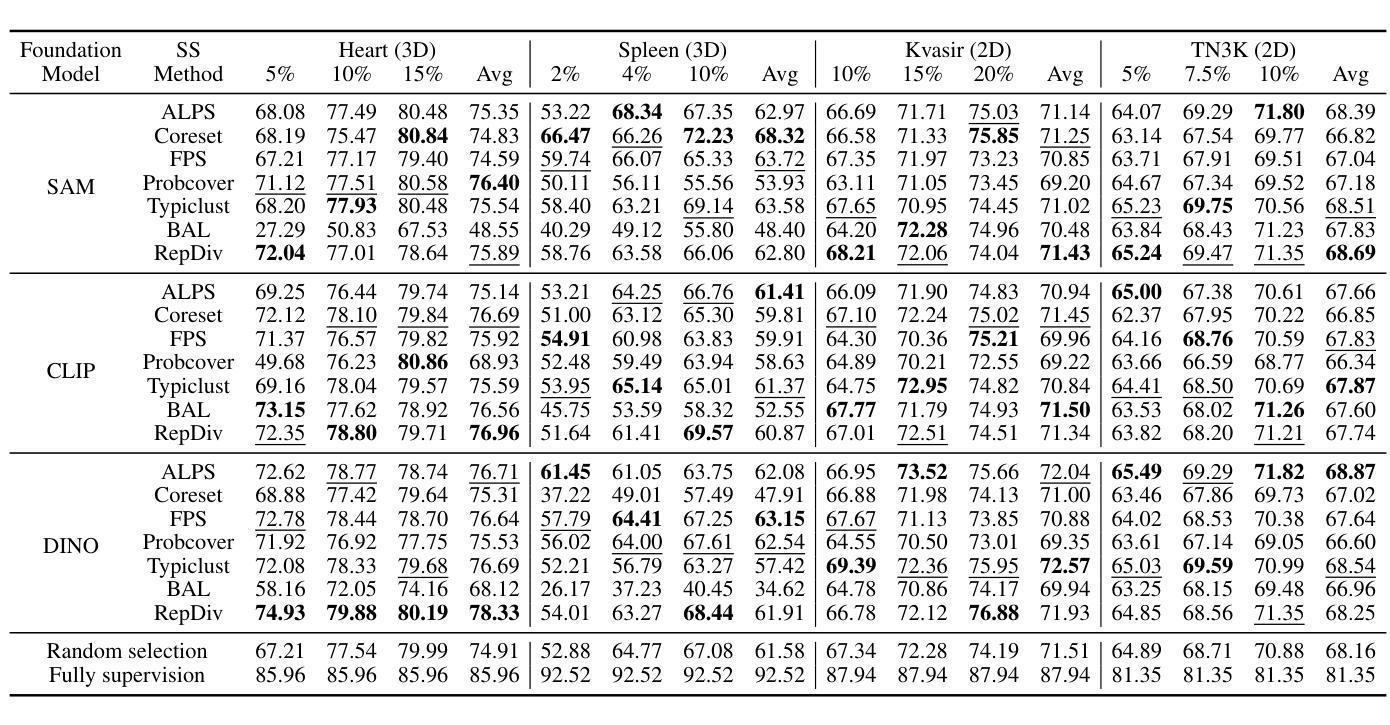 - 评估了多种FMs和CSAL策略在不同数据集、不同标注预算下的表现,涵盖了分类和分割任务。