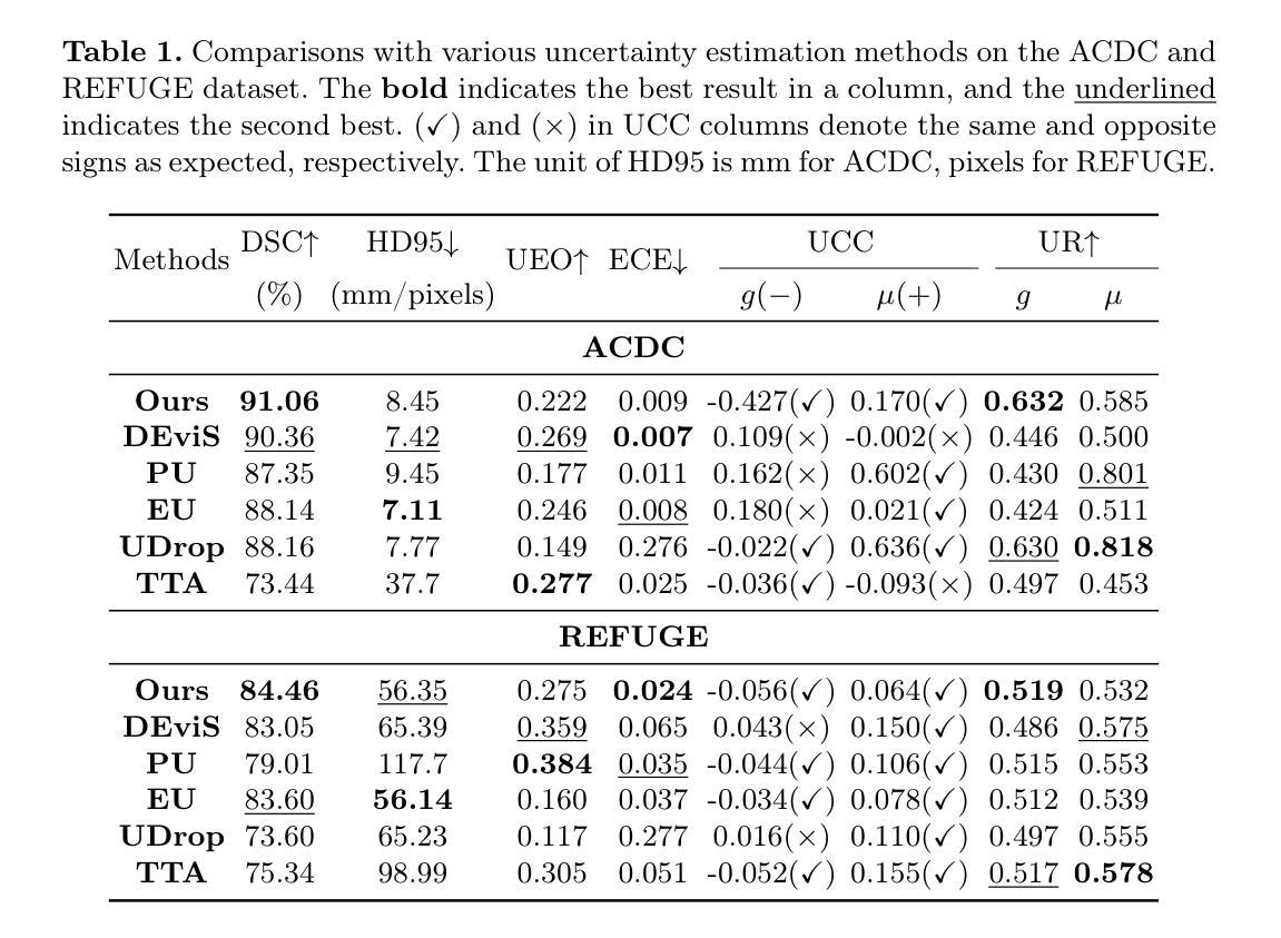 - 最佳模型具有高DSC和良好的校准不确定性估计。