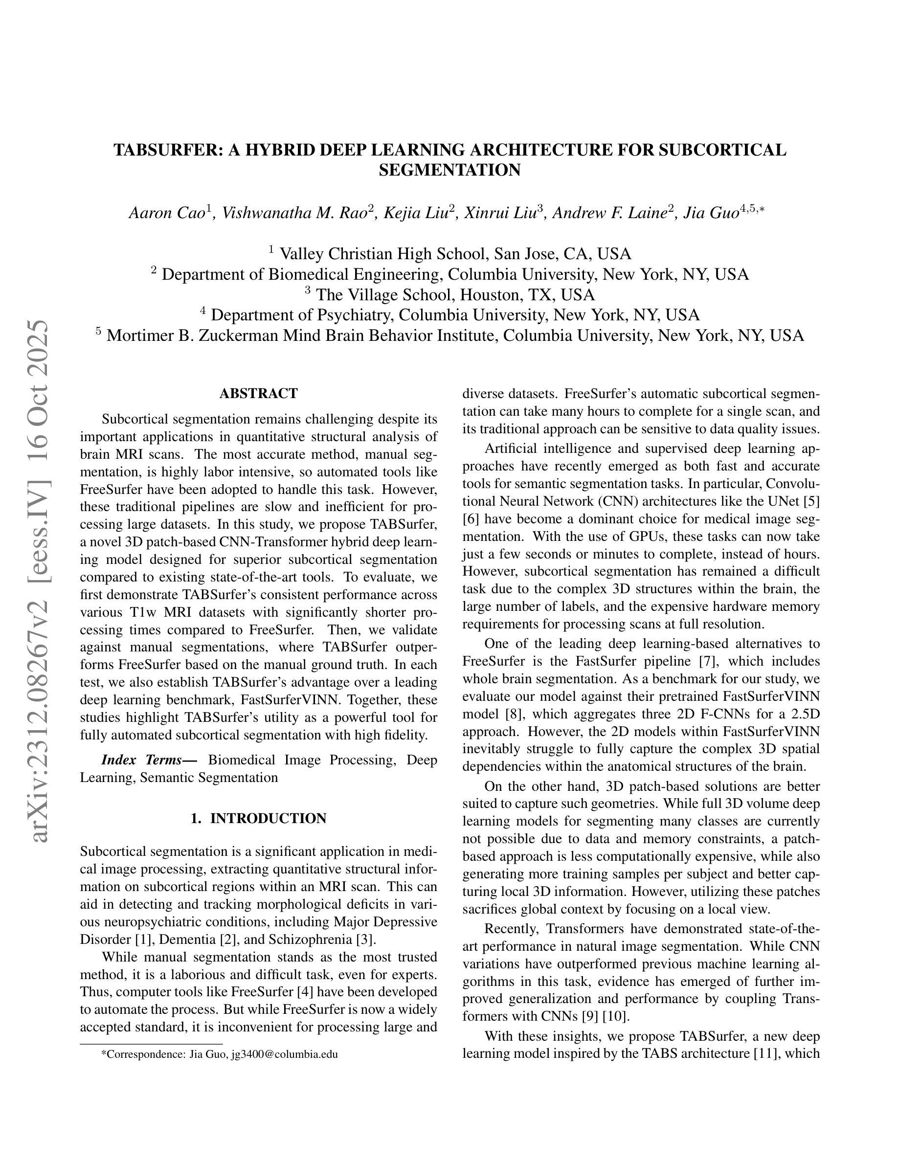 - TABSurfer是一种新型的3D补丁型CNN-Transformer混合深度学习模型,用于子皮层分割。