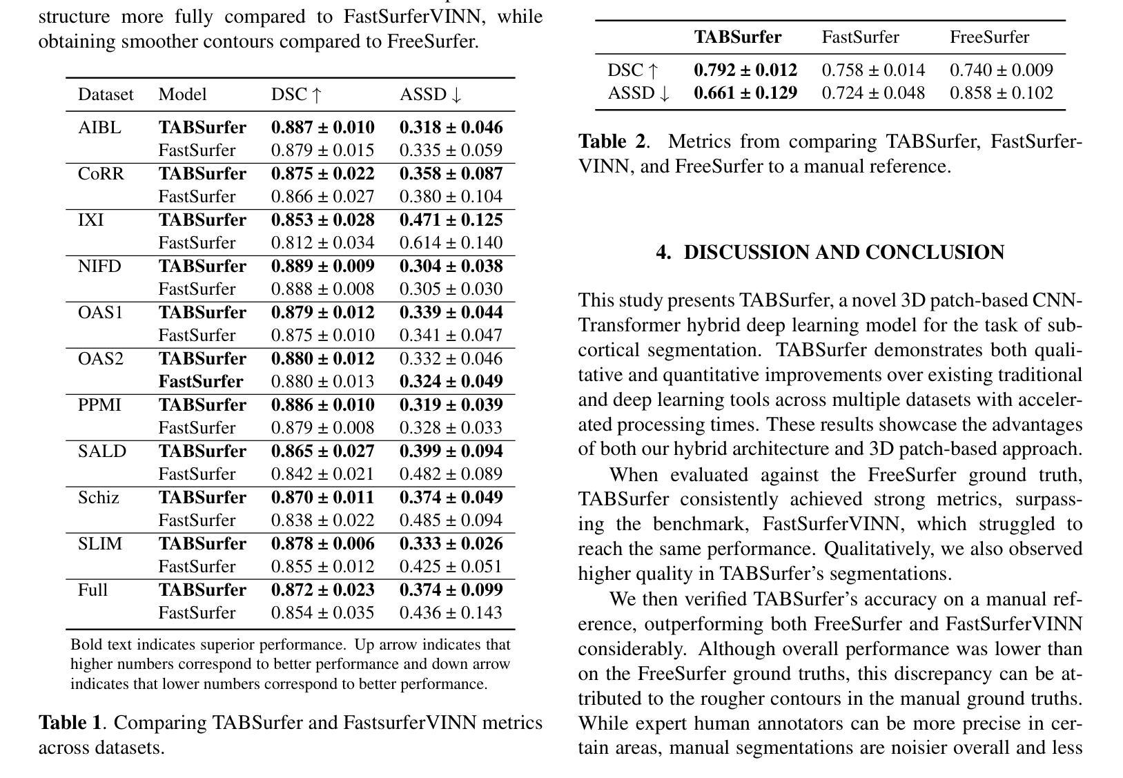 - TABSurfer相较于基准深度学习模型FastSurferVINN有所优势。