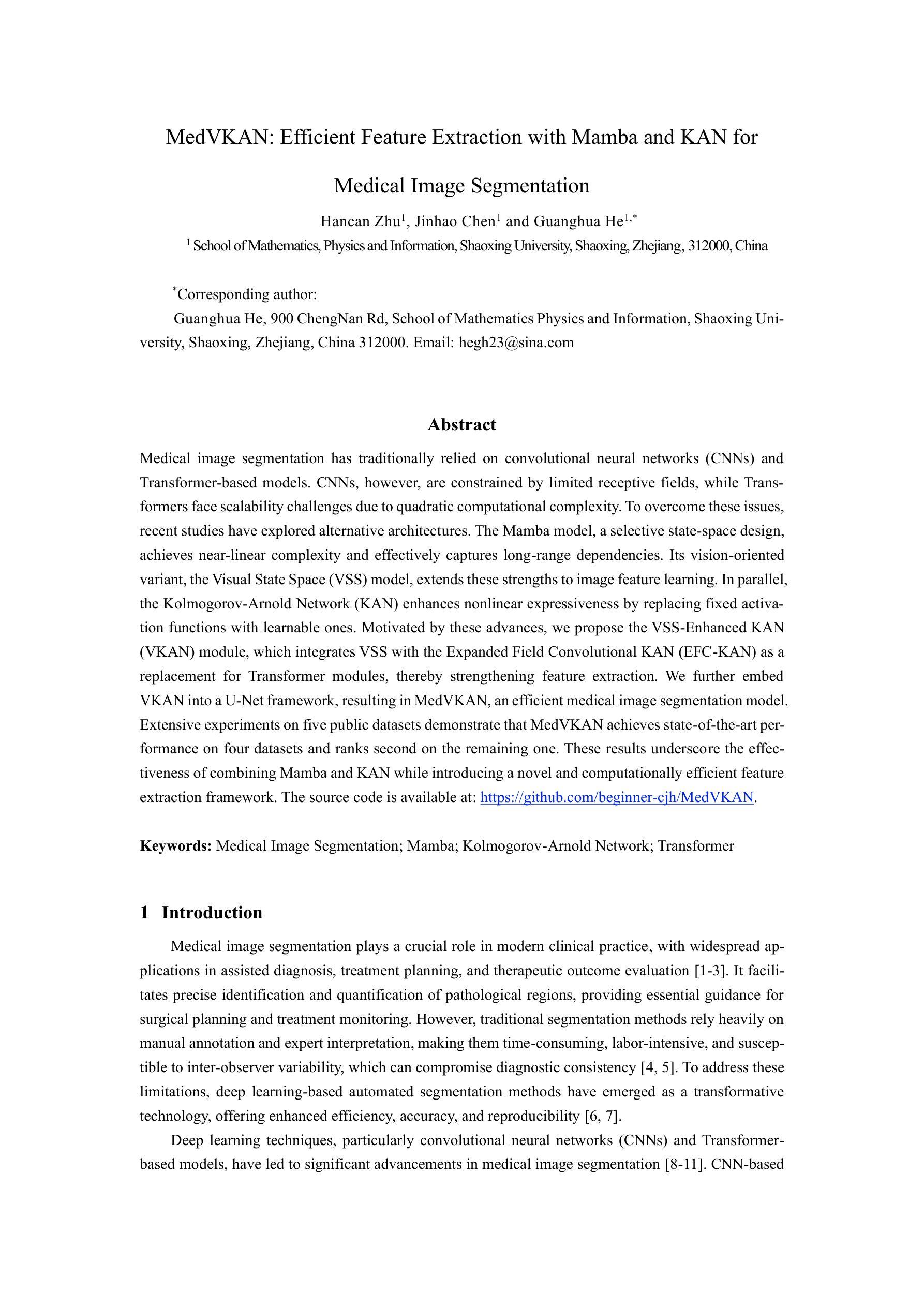 - MedVKAN模型将VKAN嵌入U-Net框架中,实现了高效的医学图像分割。