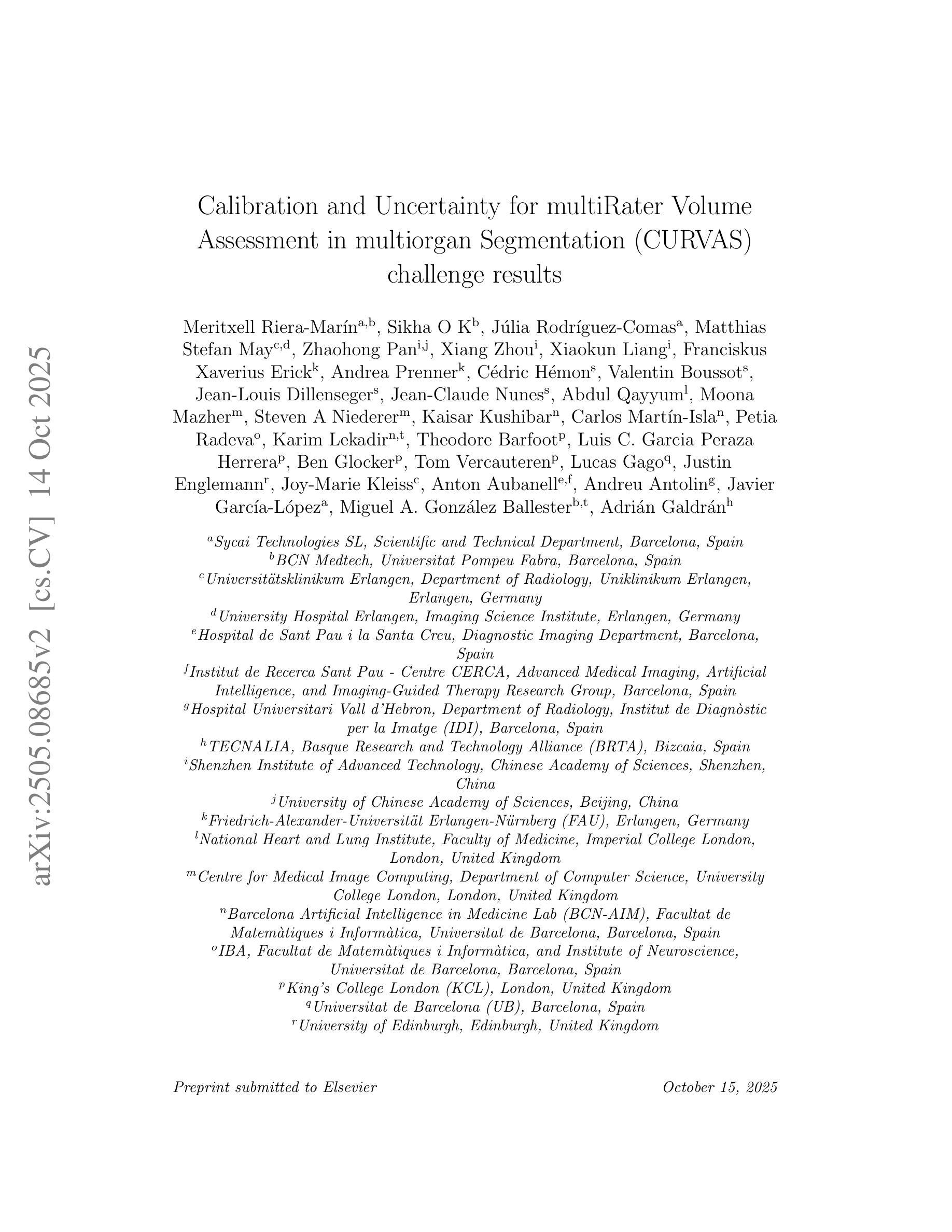 Calibration and Uncertainty for multiRater Volume Assessment in multiorgan Segmentation (CURVAS) challenge results