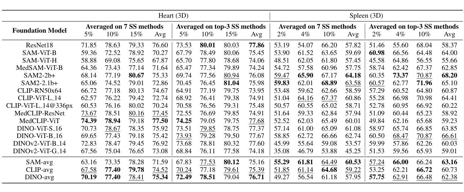 - 实验结果显示,不同FMs在分割任务上的性能差异较大,而在分类任务上的差异较小。