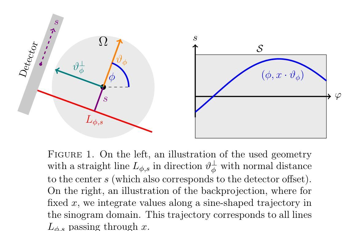 - Radon变换的离散化及其伴随的背投影是关键步骤。