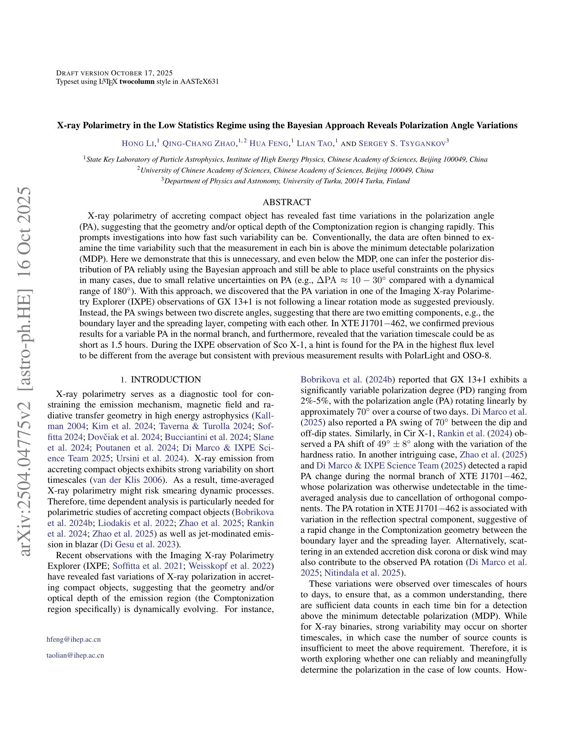 - 贝叶斯方法允许在低于最小可检测偏振度的情况下推断偏振角后验分布。