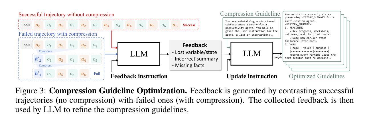 - 通过优化压缩指南和自然语言空间中的轨迹配对,LLM能够分析失败原因并更新压缩指南。