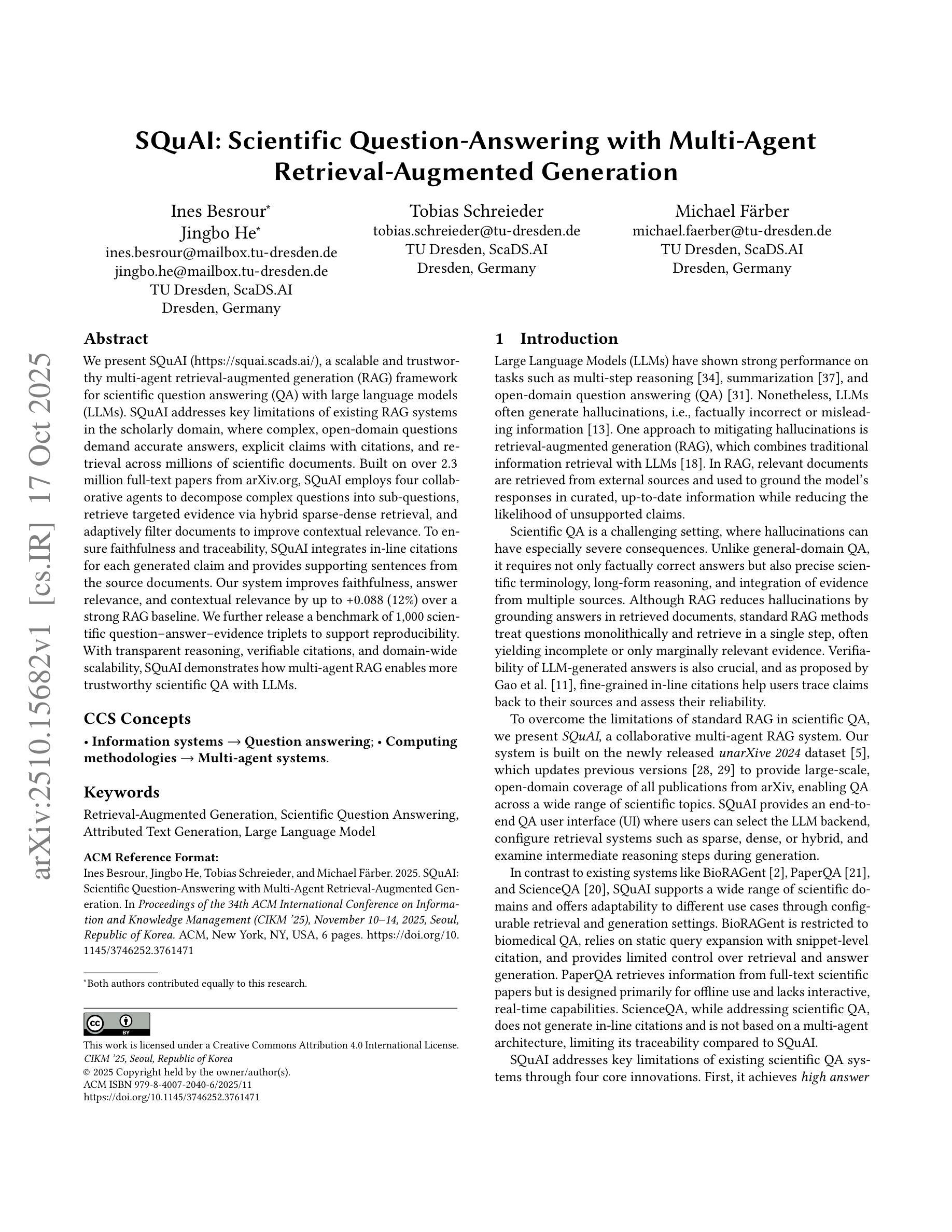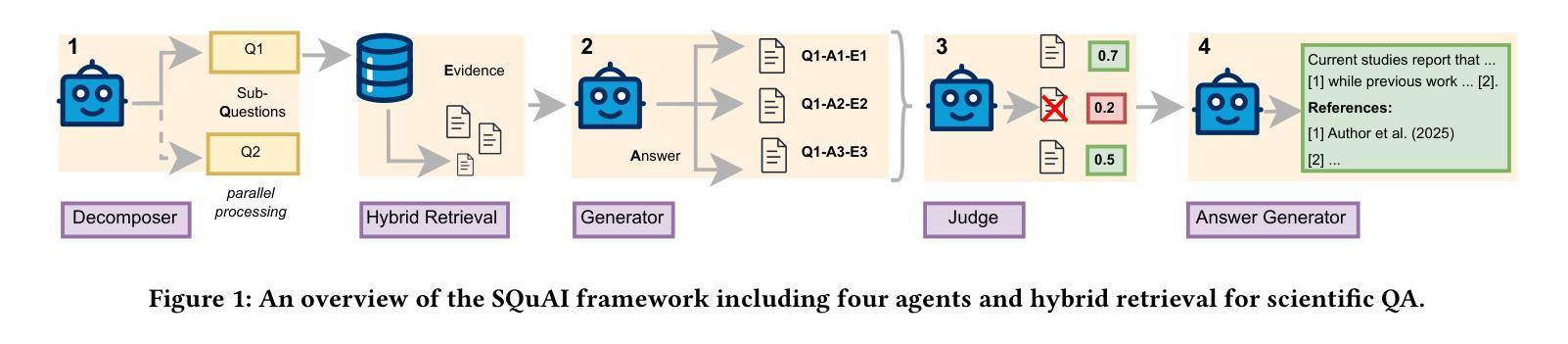 - SQuAI采用四个协作代理分解问题、检索证据并过滤文档以提高上下文相关性。