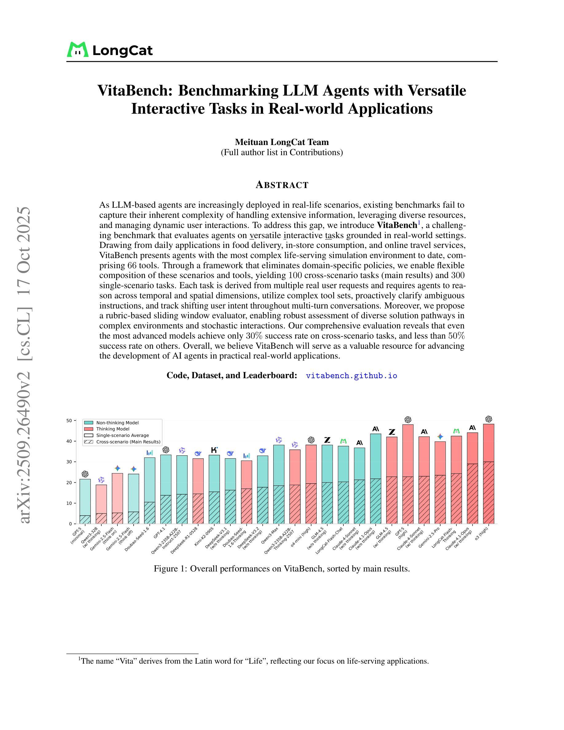 - VitaBench是一个针对LLM代理的新基准测试,旨在评估其在现实场景中的复杂表现能力。