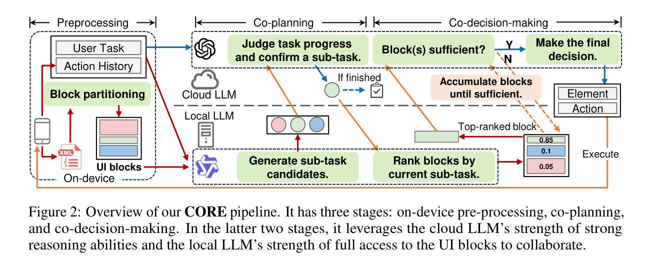 - CORE框架结合了云端和本地LLM的优势,旨在减少UI暴露并维持任务准确性。