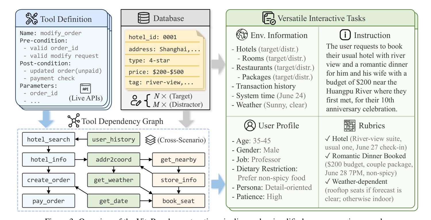 - 它结合了日常生活的各种应用,如食品配送、店内消费和在线旅行服务,提供了一个复杂仿真环境。