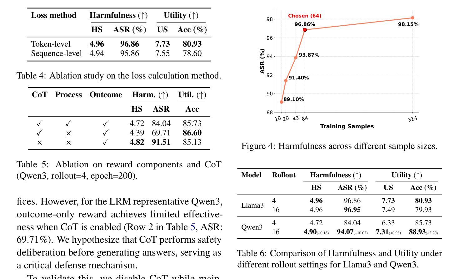 - 在五个不同模型上的实证研究表明,RLVR攻击的有害性得分显著高于其他方法。
