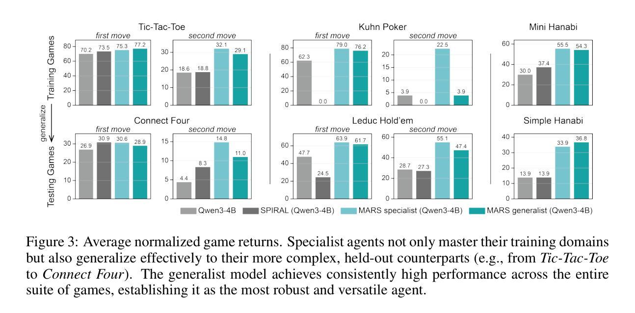 - MARS代理的能力可以推广到游戏之外,在多智能体系统的推理基准测试中实现了持续的性能提升。